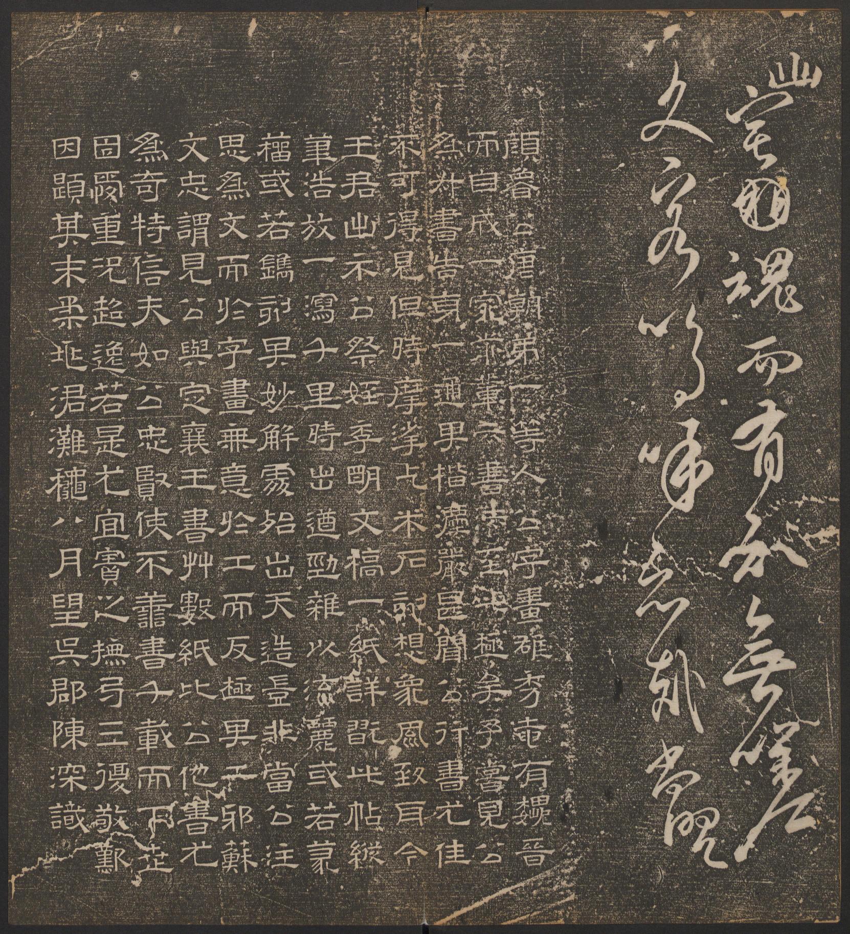 惟尔挺生。夙摽(标)幼德。宗庙瑚琏。阶庭兰玉。方凭积(善)。每慰人心。方期戬谷。何图逆贼闲衅。称兵犯顺。尔父竭诚。常山作郡。余时受命。亦在平原。仁兄爱我。(恐)。俾尔传言。尔既归止。爰开土门。土门既开。凶威大蹙。(贼臣拥众不救)。贼臣不救。