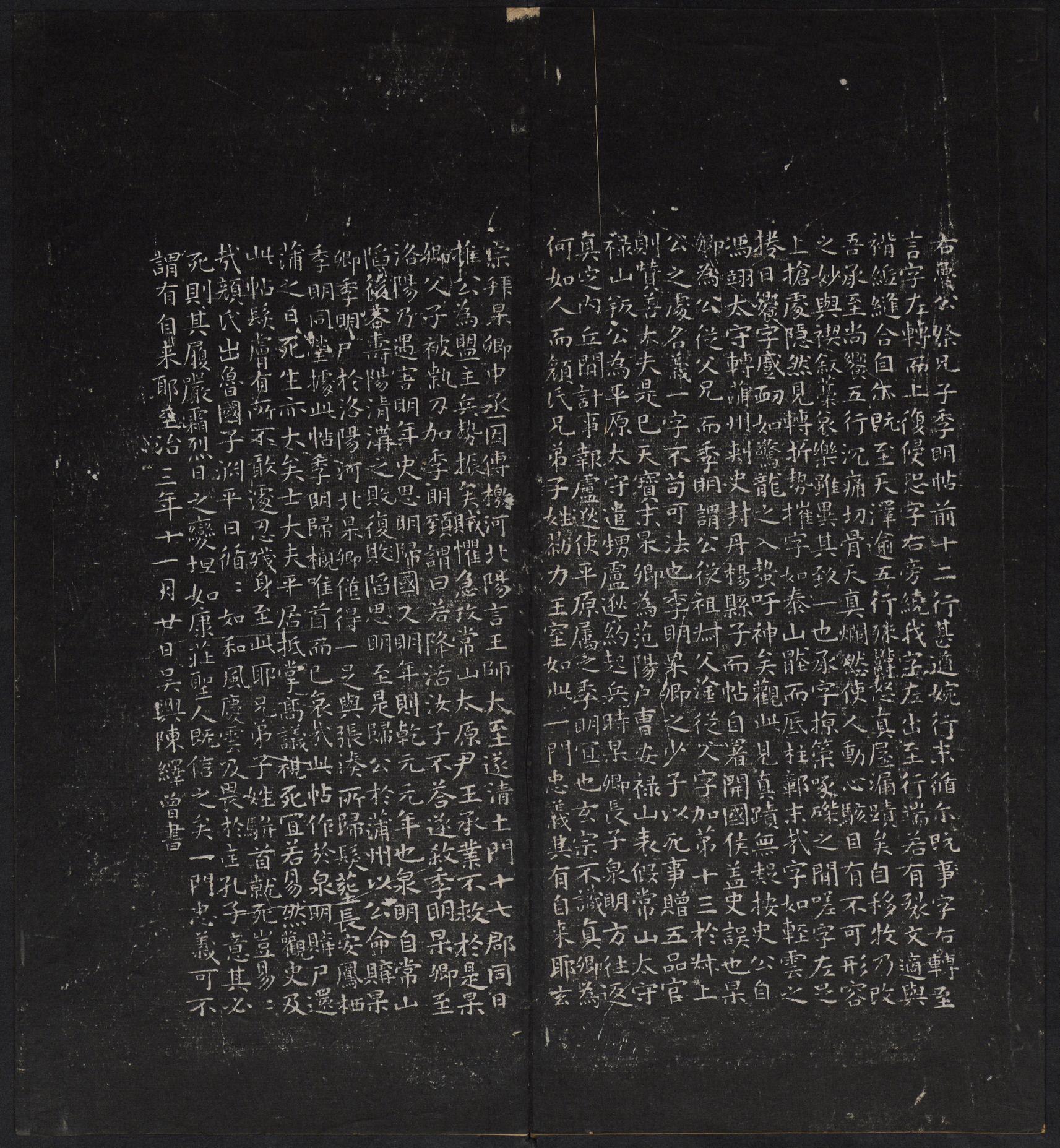 唐颜鲁公书。维乾元元年、岁次戊戌、九月庚午朔、三日壬申。第十三(从父)叔银青光禄夫使持节蒲州诸军事、蒲州刺史、上轻车都尉、丹杨县开国侯真卿。以清酌庶羞祭于亡侄赠赞善大夫季明之灵: