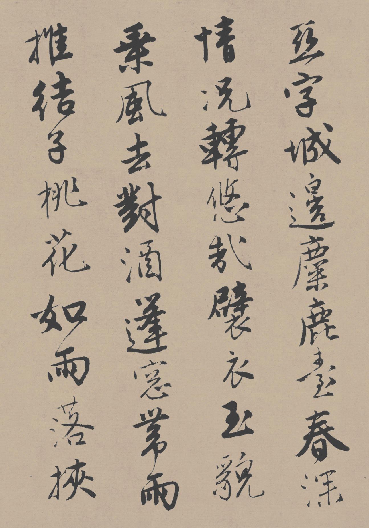 亚字城边糜鹿台,春深情况转悠哉。襞衣玉貌乘风去,对酒蓬窗带雨推。结子桃花如雨落,挟