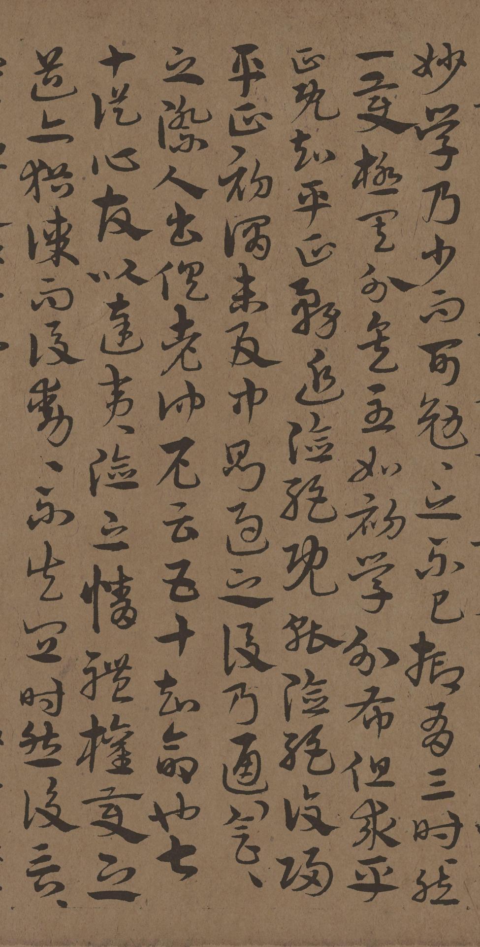 属目前,差之一豪,失之千里,苟知其述,适可兼通。心不厌精,手不忘熟。若用运尽于精熟,规矩暗于匈襟,自然容与徘徊,意先笔后,萧洒流落,翰逸神飞,亦犹弘羊之心,预乎无际;庖丁之目,不见全牛。尝有好事,就吾求习,吾乃粗举纲要,随而授之,无不心悟手从,言忘意得,纵未穷于众术,断可极于所诒矣。若思通楷则,少不如老;学成规矩,老不如少。思则老而愈