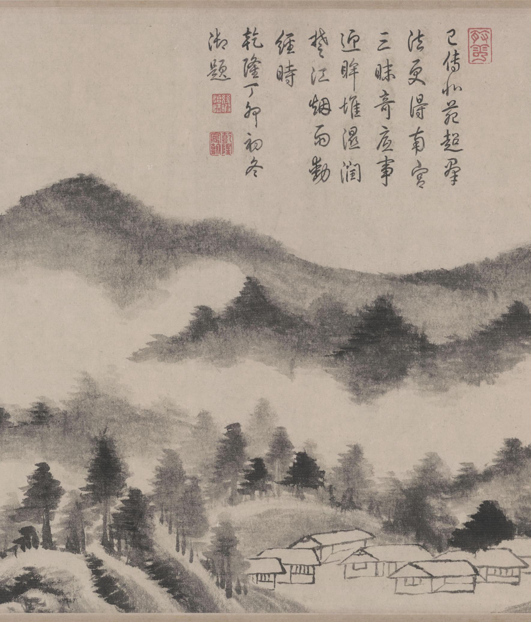 已传北苑超群法,更得南宫三昧奇。底事迎眸惟湿润,楚江烟雨动经时。乾隆丁卯初冬御题。