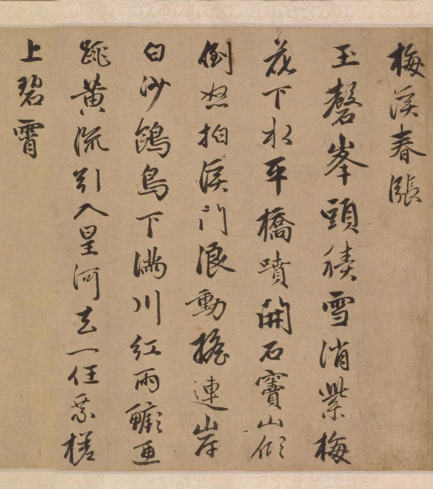 梅溪春涨。腊雪消残春水生,一篙新绿到榴平。沙头贾舶欢相菱,明日扬帆自在行。