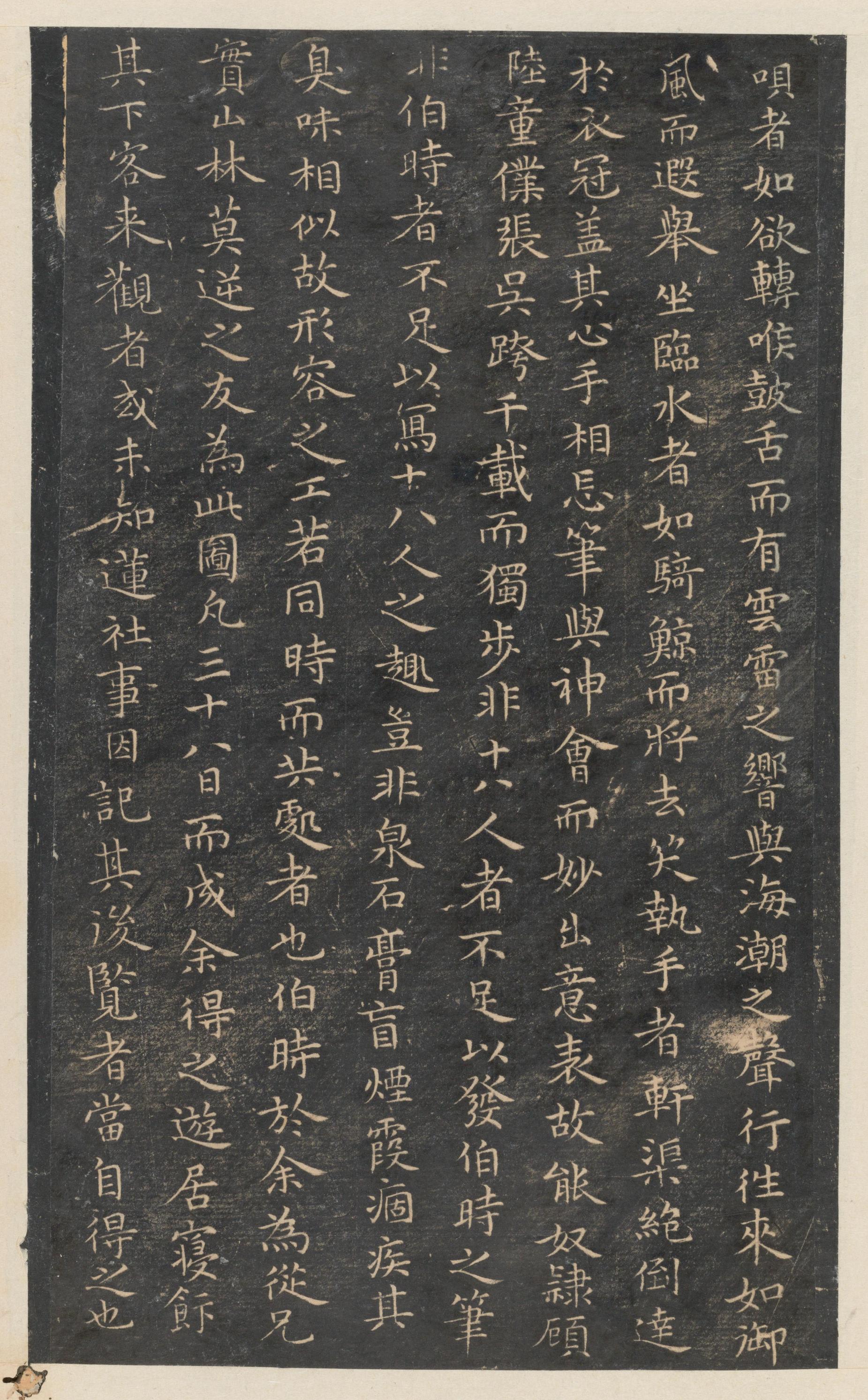 宋薛道祖书。永和九年,岁在癸丑,暮春之初,会于会稽山阴之兰亭,修禊事也。群贤毕至,少长咸集。此地有崇山峻领(岭),茂林修竹,又有清流激湍,映带左右。引以为流觞曲水