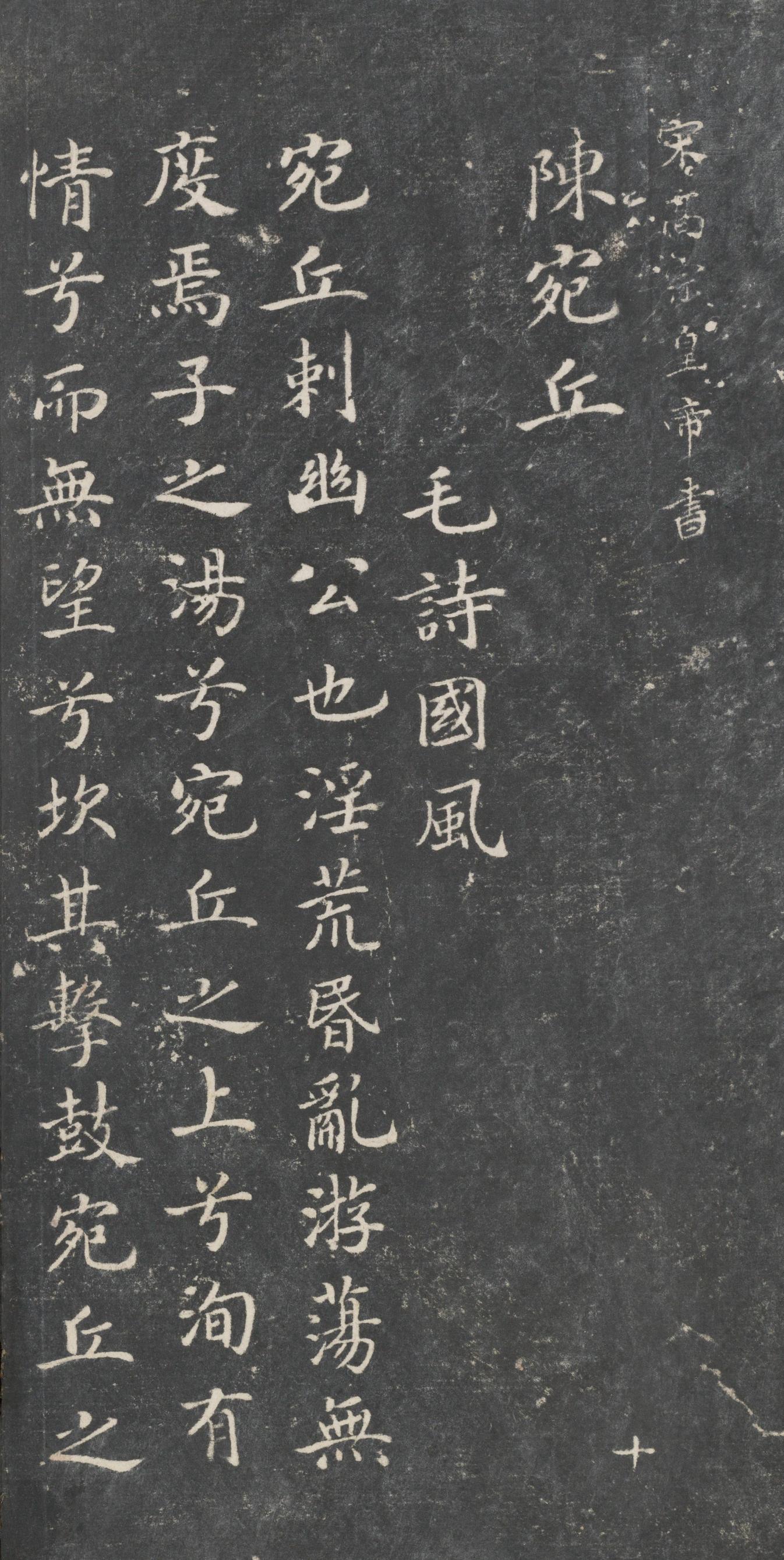 宋高宗皇帝书。陈宛丘。毛诗国风。《宛丘》,刺幽公也。淫荒昏乱,游荡无度焉。”子之汤兮,宛丘之上兮。洵有情兮,而无望兮。坎其击鼓,宛丘之
