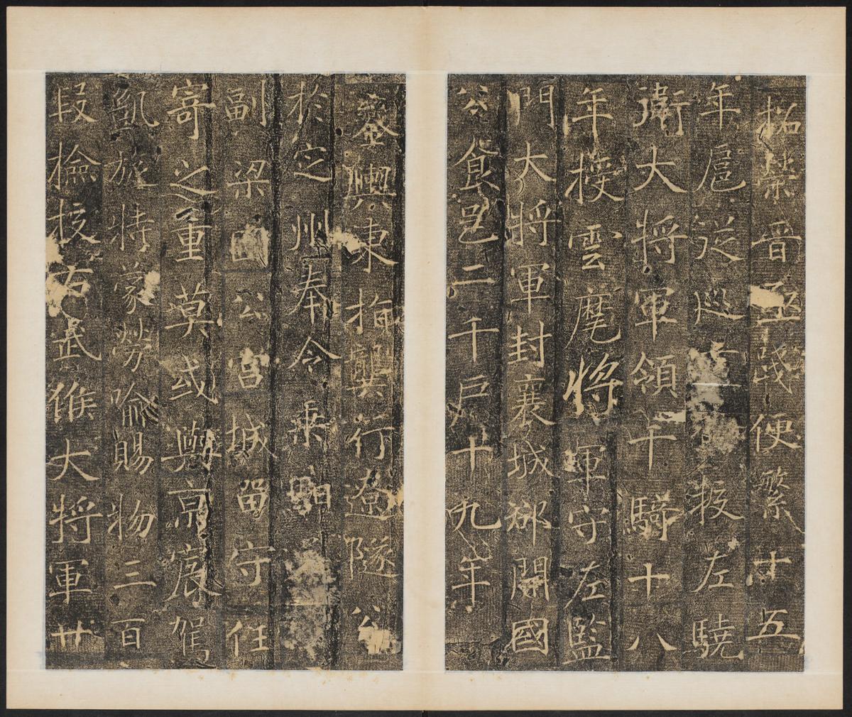 大唐故左监门大将军襄城郡开国公樊府君碑铭并序。若夫轩弧登御,威有截而开基;妫戚陈阶,格远方而载化。是知器之攸假,理无废于五材;国之所隆,业有偕于七德。皇家跃龙而启千载,翦鸿而清九野,叱咤而会风云,抑扬而徙舟壑。其有应衔珠之象,纵杰挺生;延捧