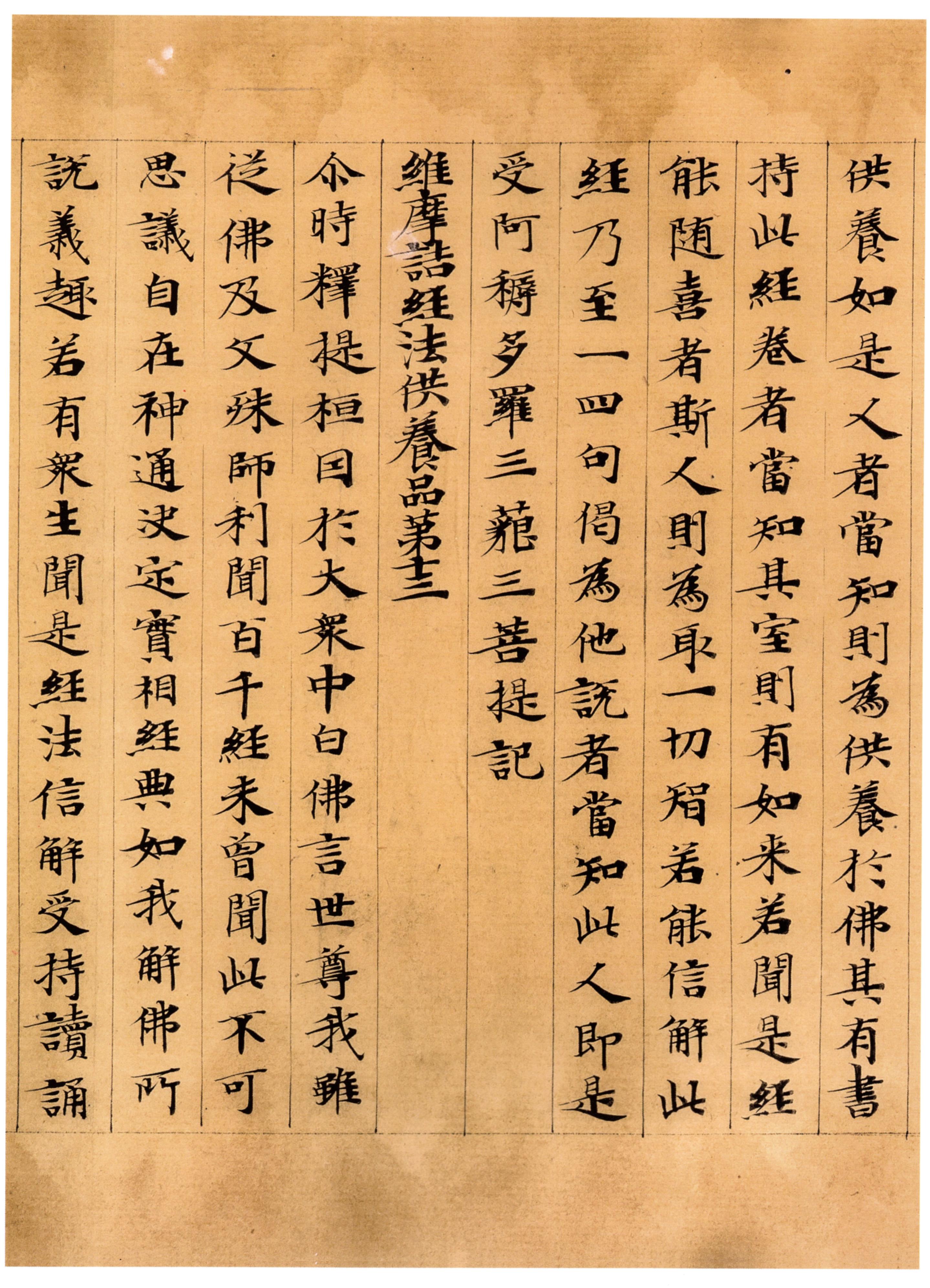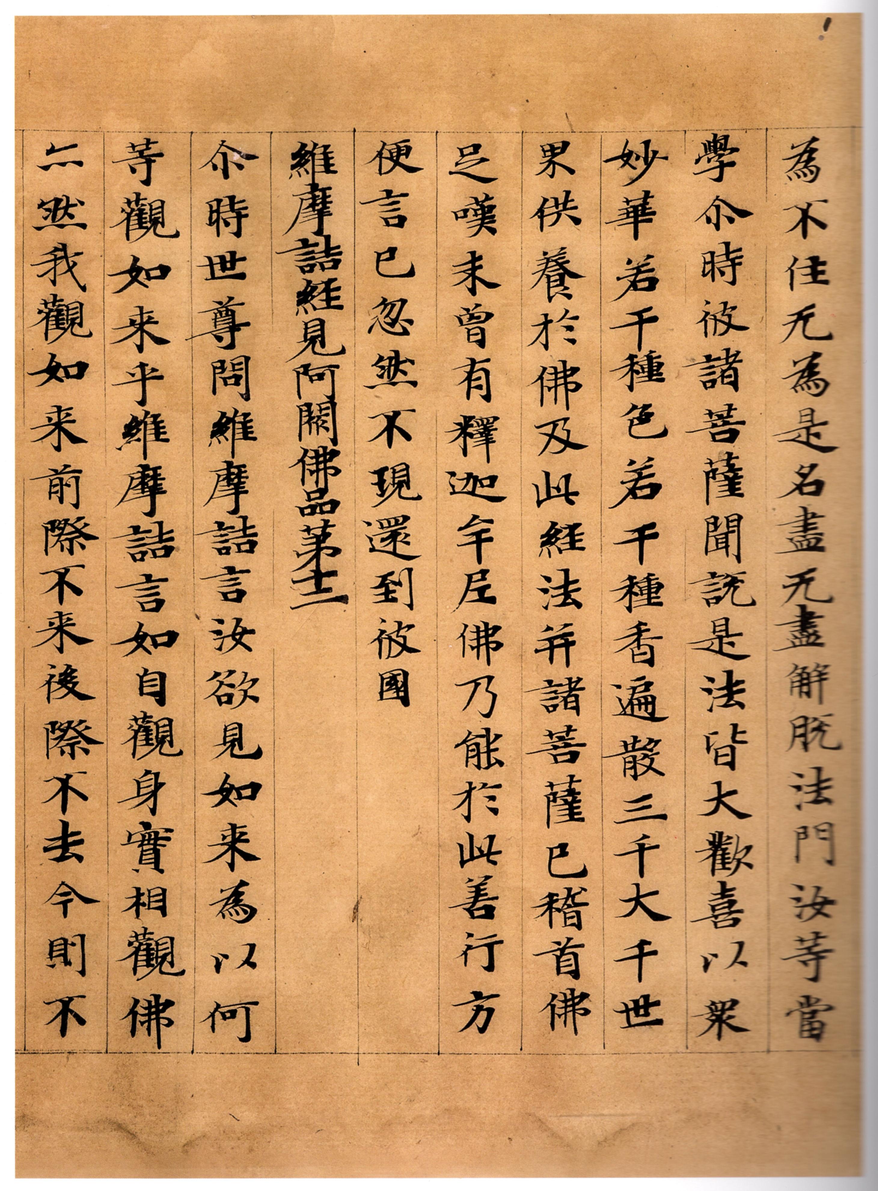 持此經卷者,當知其室,則有如来。若聞是經能随喜者,斯人則為取一切智。若能信解此經,乃至一四句偈,為他說者,當知此人,即是受阿䅶多羅三藐三菩提記。維摩詰經法供養品苐十三。尒時,釋提桓因扵大衆中白佛言:世尊,我雖従佛及文殊師利,聞百千經,未曾聞此不可思議自在神通,决定實相經典。如我解佛所說義趣,若有衆生聞此經法,信解受持讀誦