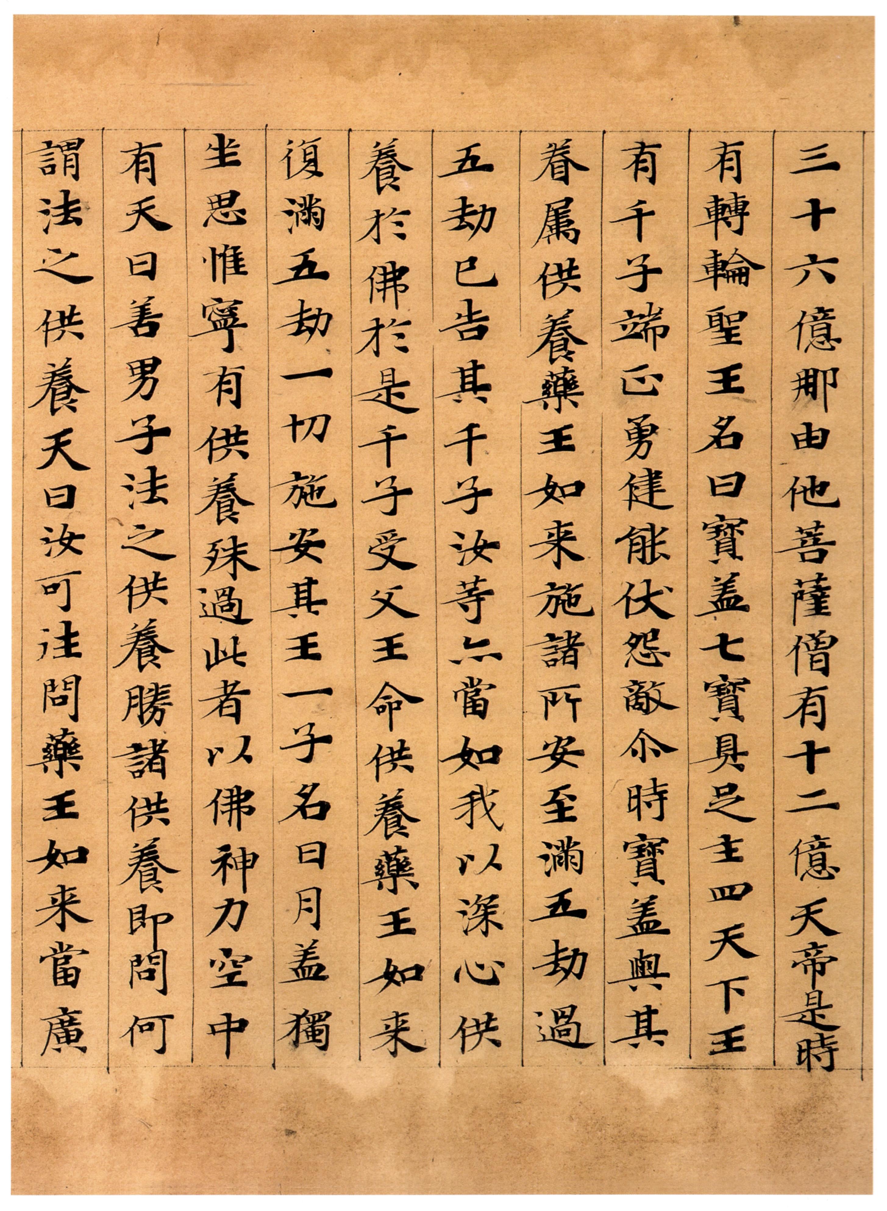 聲聞辟支佛心,无量衆生,得生天上。天帝,時王寳盖,豈異人乎?今現得佛,号寳爓如来。其王千子,即賢劫中千佛是也。従迦羅鳩孫大為始得佛,㝡後如来,号曰楼至。月盖比丘,則我身是也。如是,天帝,當知此要,以法供養,扵諸供養為上為㝡,苐一无比。是故天帝,當以法之供養,供養扵佛。維摩詰經嘱累品苐十四。扵是,佛告弥勒菩薩言:弥勒,我今以是无量億阿僧祇劫所集阿䅶多羅三藐三菩提,付