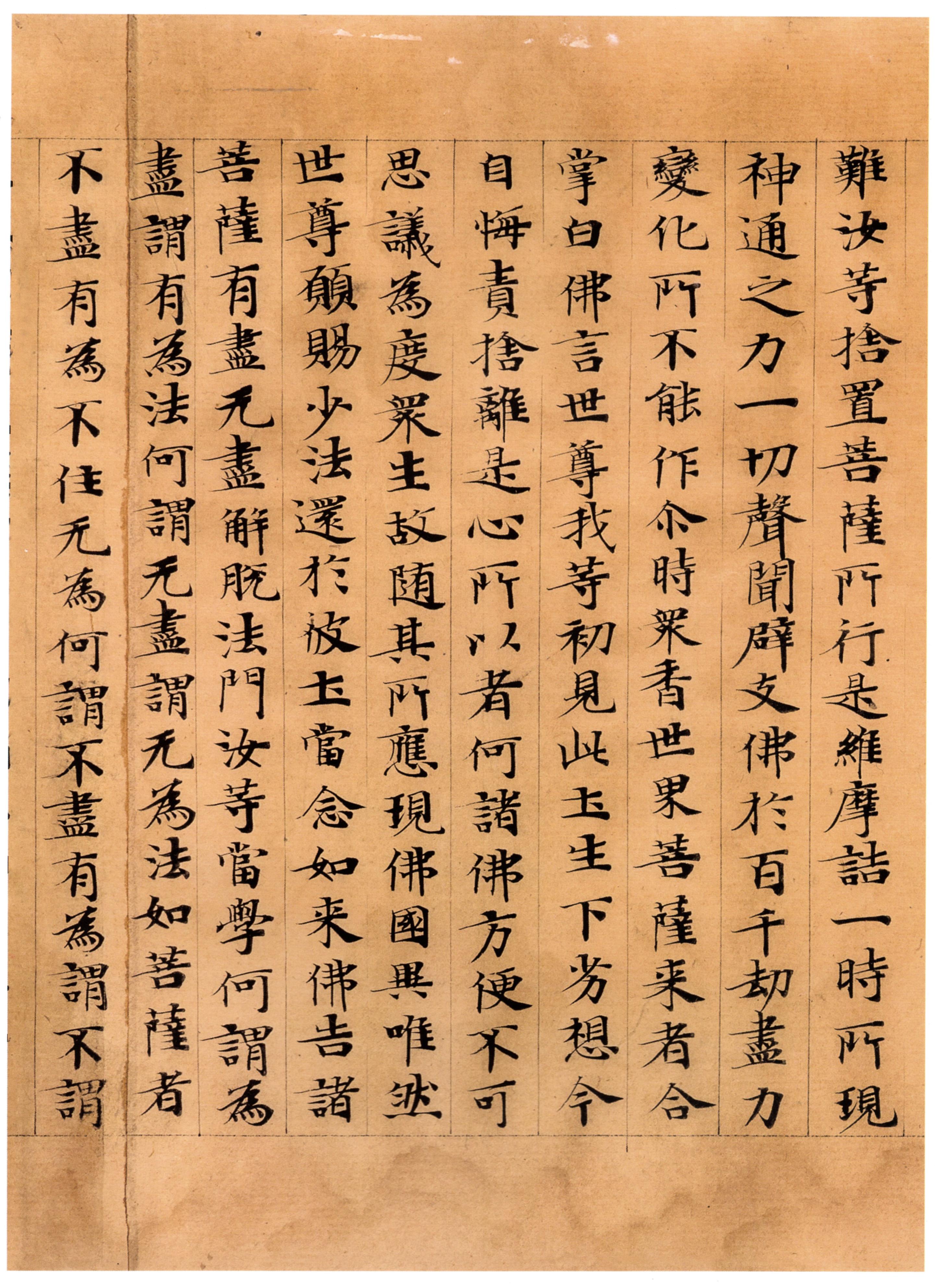 行善根,无有齊限;以諸浄國嚴餝之事,成巳佛圡;開門大施,具足相好;除一切恶,身口意浄。故生死无數劫,意而有勇;聞佛无量徳,志而不惓。以智慧劒,破烦惚賊;出陰界入,荷負衆生,永使解脫。以大精進,摧伏魔軍,常求无念實相智慧,扵世間法,少欲知足;扵出世間法,求之无厭。不壊威儀,而能随俗。起神通慧,引檤衆生,得念捴持,所聞不忘。善别諸根,断衆生疑;以樂說辯,演法无㝵。浄十善道,受天人福;脩四无量,