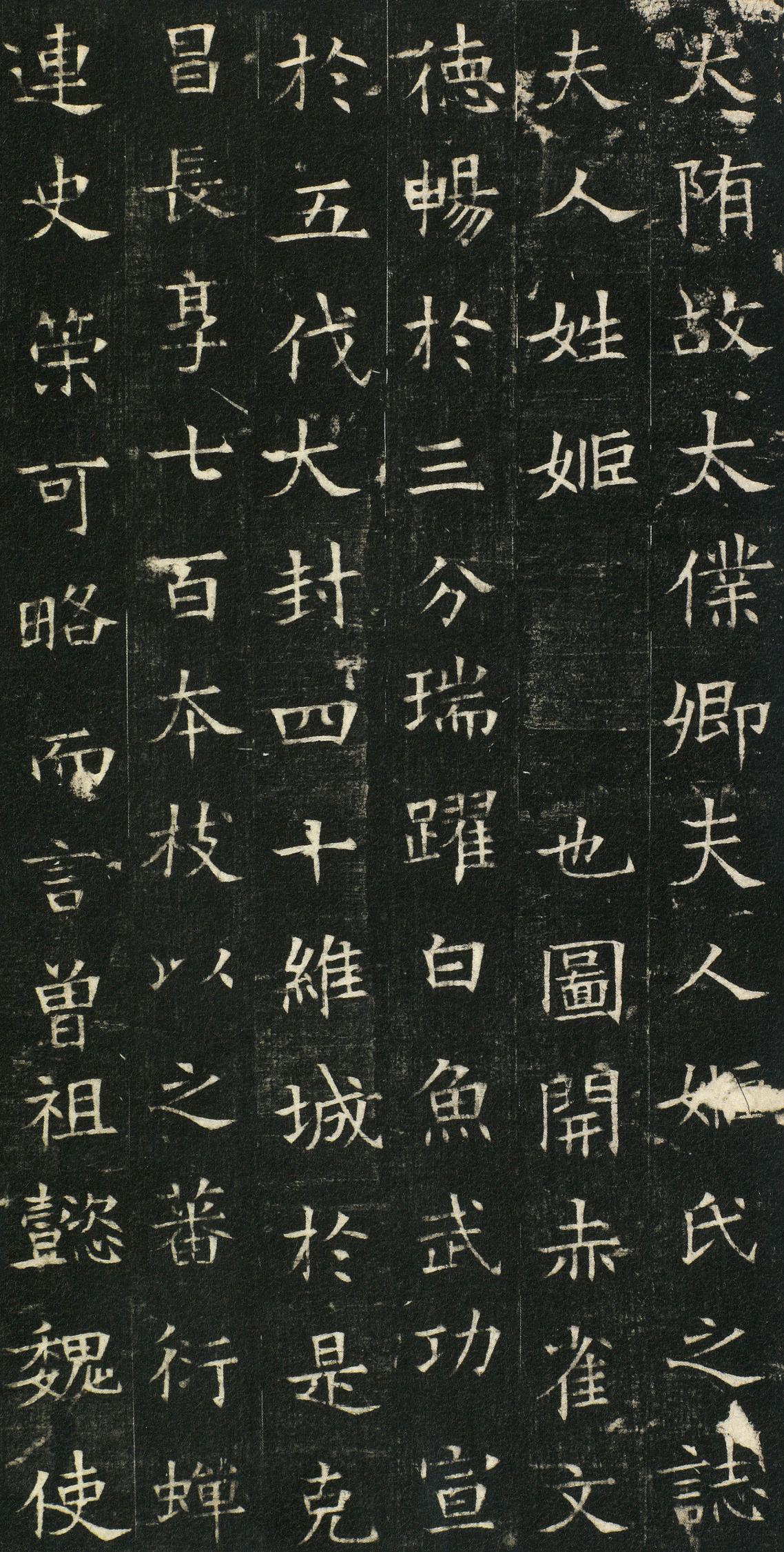 大陏故太㒒?夫人姬氏之誌,夫人姓姬,也。圗開赤雀,文徳暢扵三分,瑞躍白魚,武功宣扵五伐,大封四十,維城扵是克昌,長享七百,本枝以之蕃衍,蟬連史筞,可略而言,曽祖懿,魏使