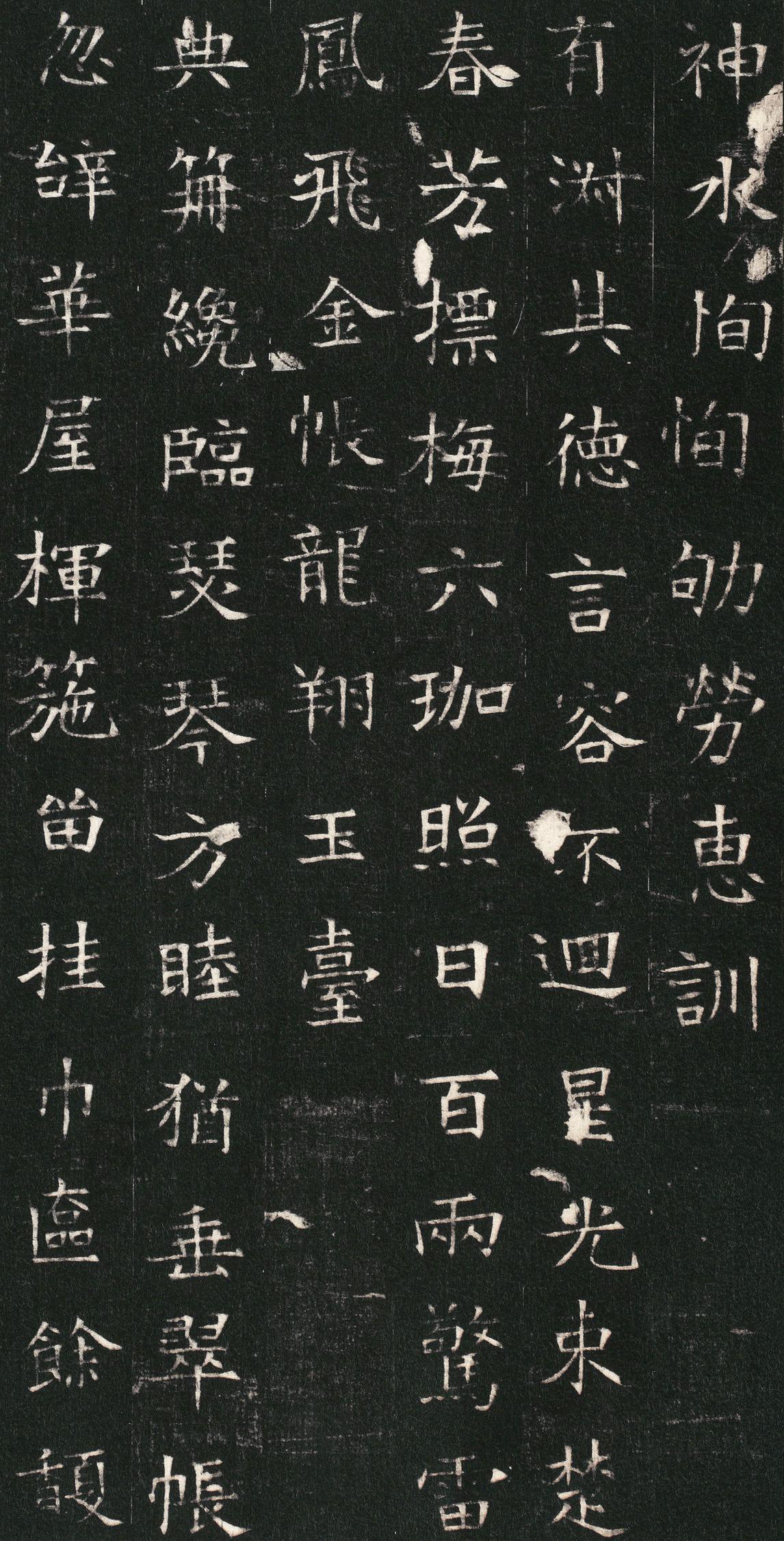 神水恂恂,劬勞恵訓,有㳤其徳,言容不逥,星光束楚,春芳摽梅,六珈照日,百兩驚雷,鳳飛金帳,龍翔玉臺,典?纔臨,瑟琴方睦,猶?翠帳,忽辝華屋,楎箷㽞挂,巾匲餘馥,