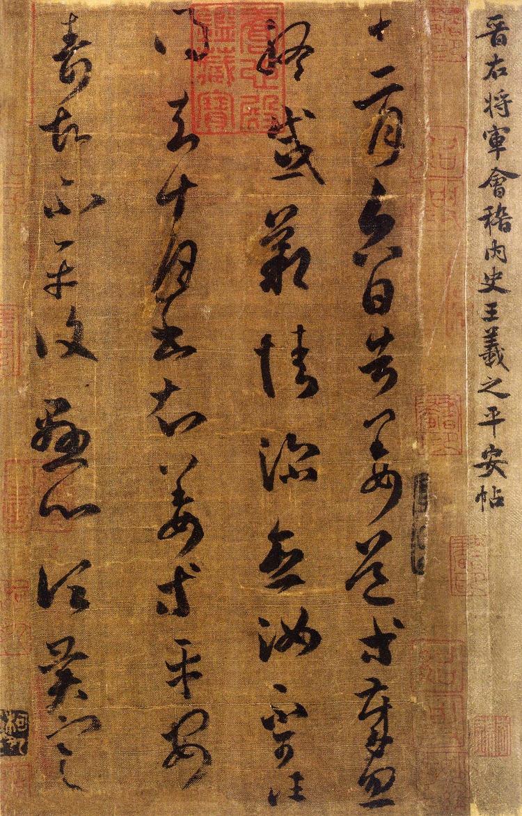 晋右将军会稽内史王羲之平安帖。十二月六日,告姜道等,风岁忽终,感叹情深。念汝不可往。得去十月书,知姜等平安。寿故不平,复悬心,顷异寒。