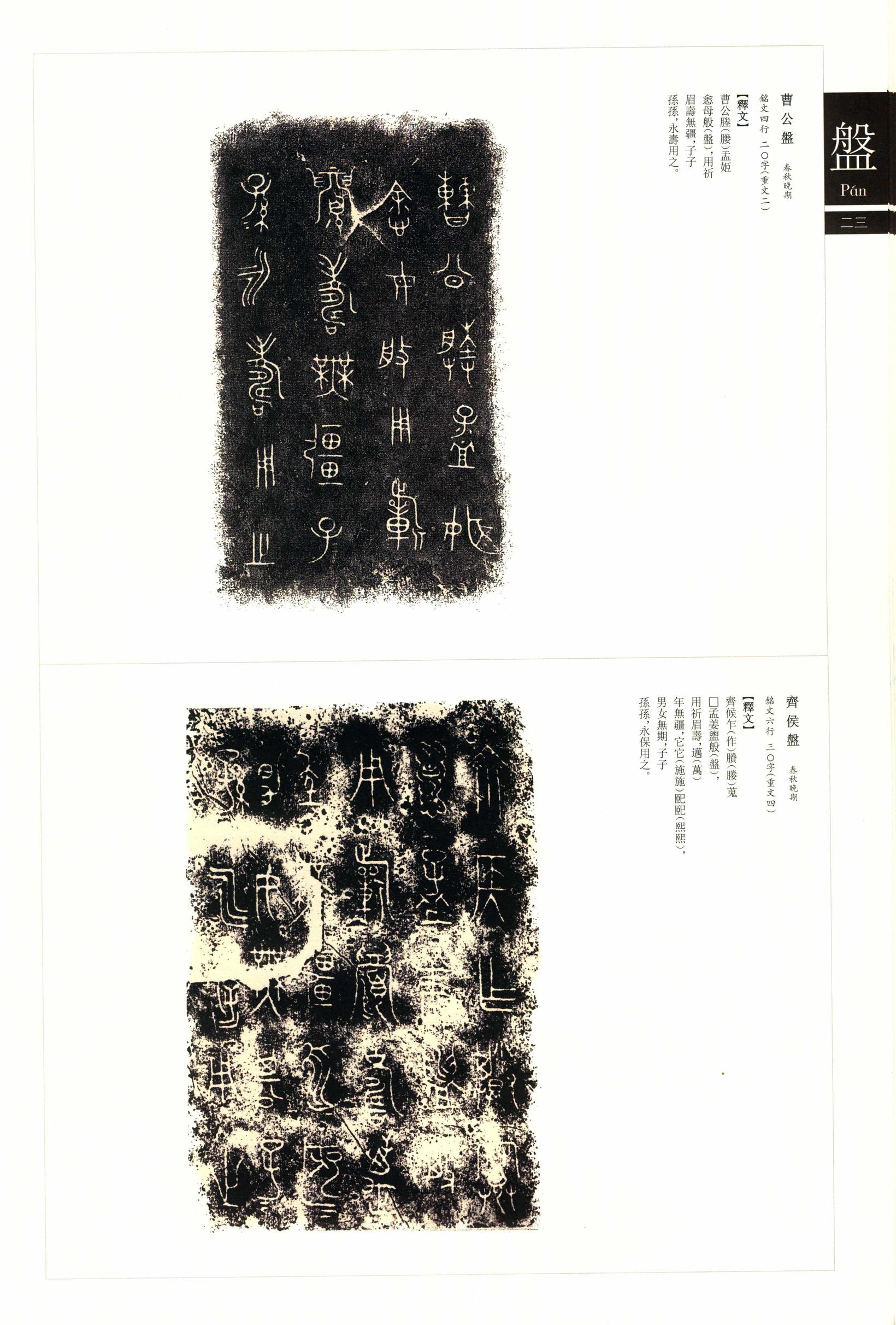 曹公塍盂姬悆母般,用祈眉壽無彊,子子孫孫,永壽用之;齊侯乍賸蒐孟(姜)盥(般),用祈眉壽,邁年(無)彊,它它巸巸,男女無㫷,子子孫孫,永(保)用之。